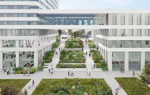 Le complexe sera séparé à sa base par une arche, avec, au pied, un escalier végétal en forme de cascade, dans l'axe de la piste des géants, symbole de Montaudran et de Toulouse, capitale de l'aéronautique. Ce passage insolite permettra de rejoindre la LMSE, une voie réservée aux bus, piétons et aux cyclistes servant à désenclaver le sud-est de la ville rose.