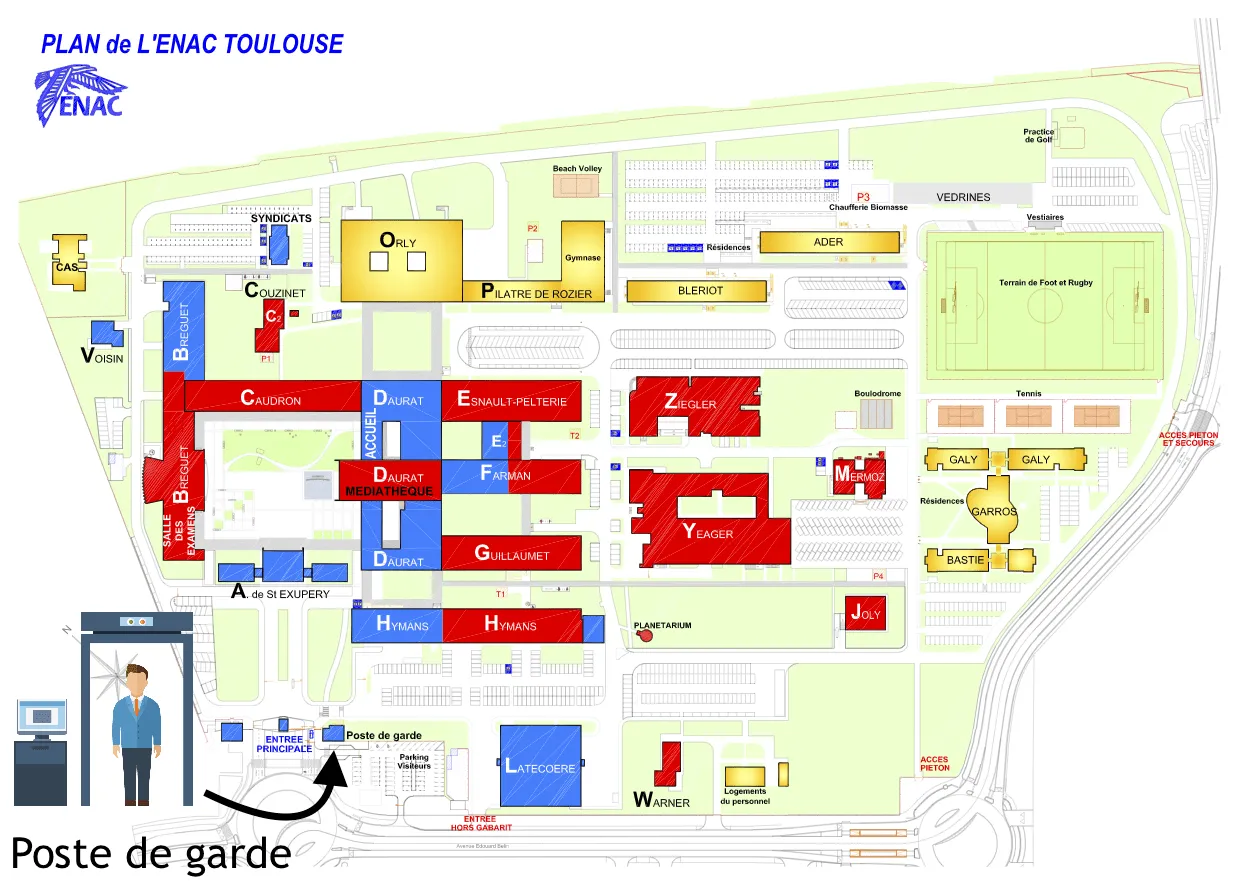 En raison du plan Vigipirate, l'accès et le stationnement sur les parkings de l'ENAC sont interdits.