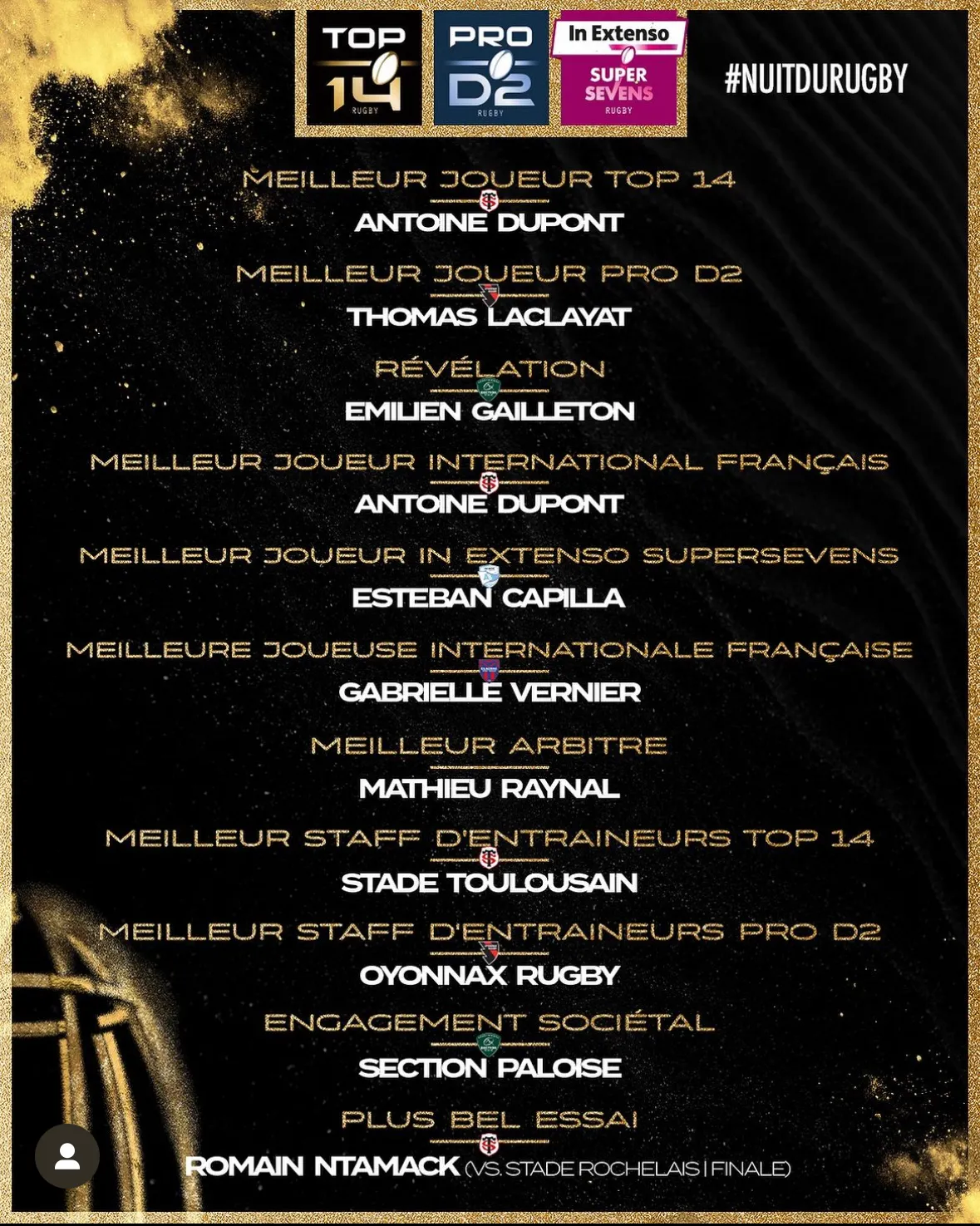 Le palmarès complet de la 19e édition de la nuit du rugby à découvrir ici :