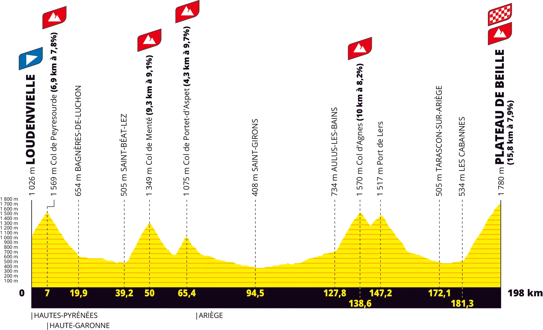 Le lendemain, direction la Haute-Garonne et l'Ariège qui verront la 15e étape : Loudenvielle - Plateau de Beille, le 14 juillet 2024, jour de fête nationale. Programme indigeste au menu des festivités, avec pas moins de six ascensions, de quoi donner des nausées à nos coureurs toulousains Anthony Perez et Quentin Pacher.