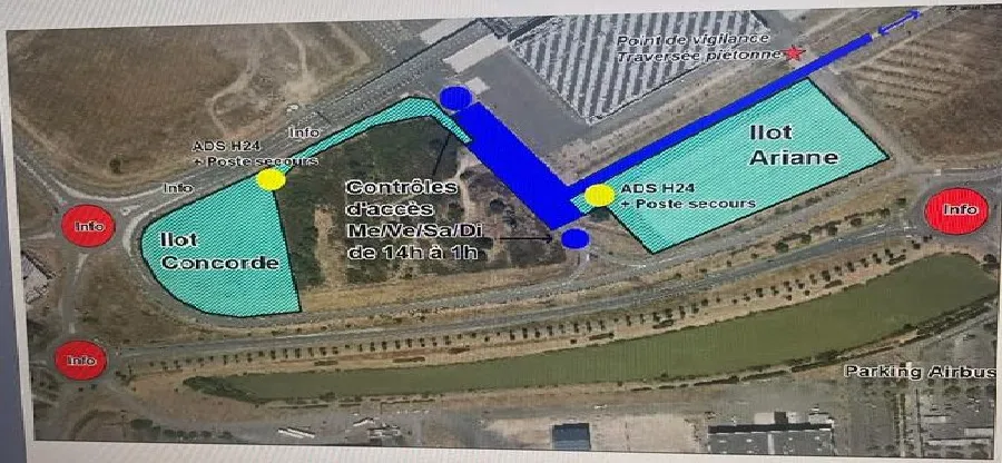 Une partie sur l’ilot Ariane, devant le parvis du MEETT, l’autre partie sera sur l’ilot concorde dans le prolongement en direction de Mondonville. Les 2 zones sont facilement accessibles à pied avec une zone piéton mise en place.