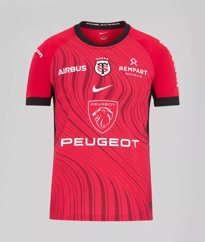 Après avoir quasi tout raflé lors de la 19e édition de la Nuit du Rugby, le Stade Toulousain dévoile son maillot Champions Cup 2023/2024. Le club de rugby haut-garonnais innove cette année. Il présente une tunique rouge, à l'effet ondulé, en référence, sans doute, au jeu de mouvement du Stade Toulousain.