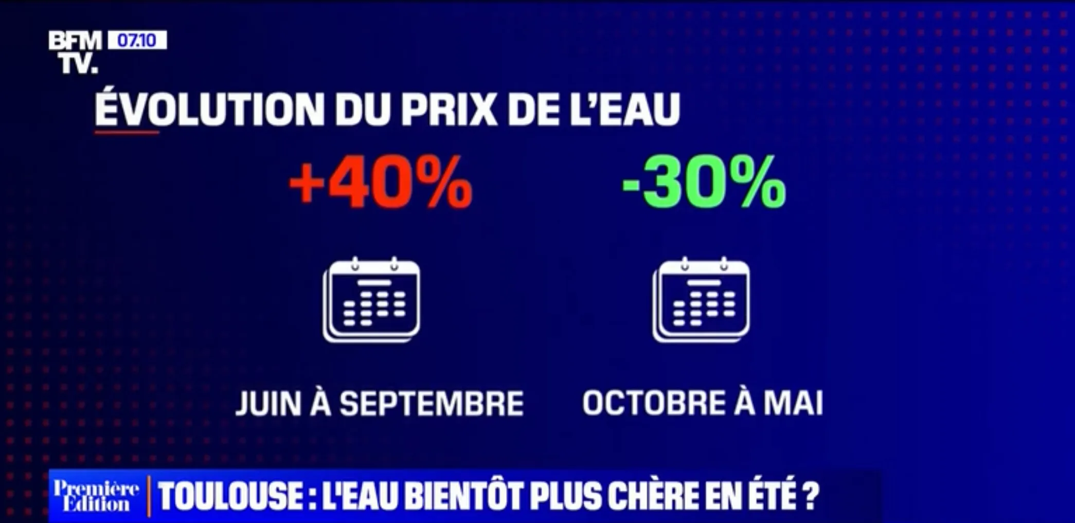 « L'idée, c'est de faire en sorte que quand il y a peu d'eau disponible, on la fasse payer plus cher », détaille Jean-Luc Moudenc sur BFM TV. « Au contraire, quand il y a davantage d'eau disponible, l'idée c'est qu'on la fasse payer moins cher pour qu'à la fin la facture soit du même montant. »