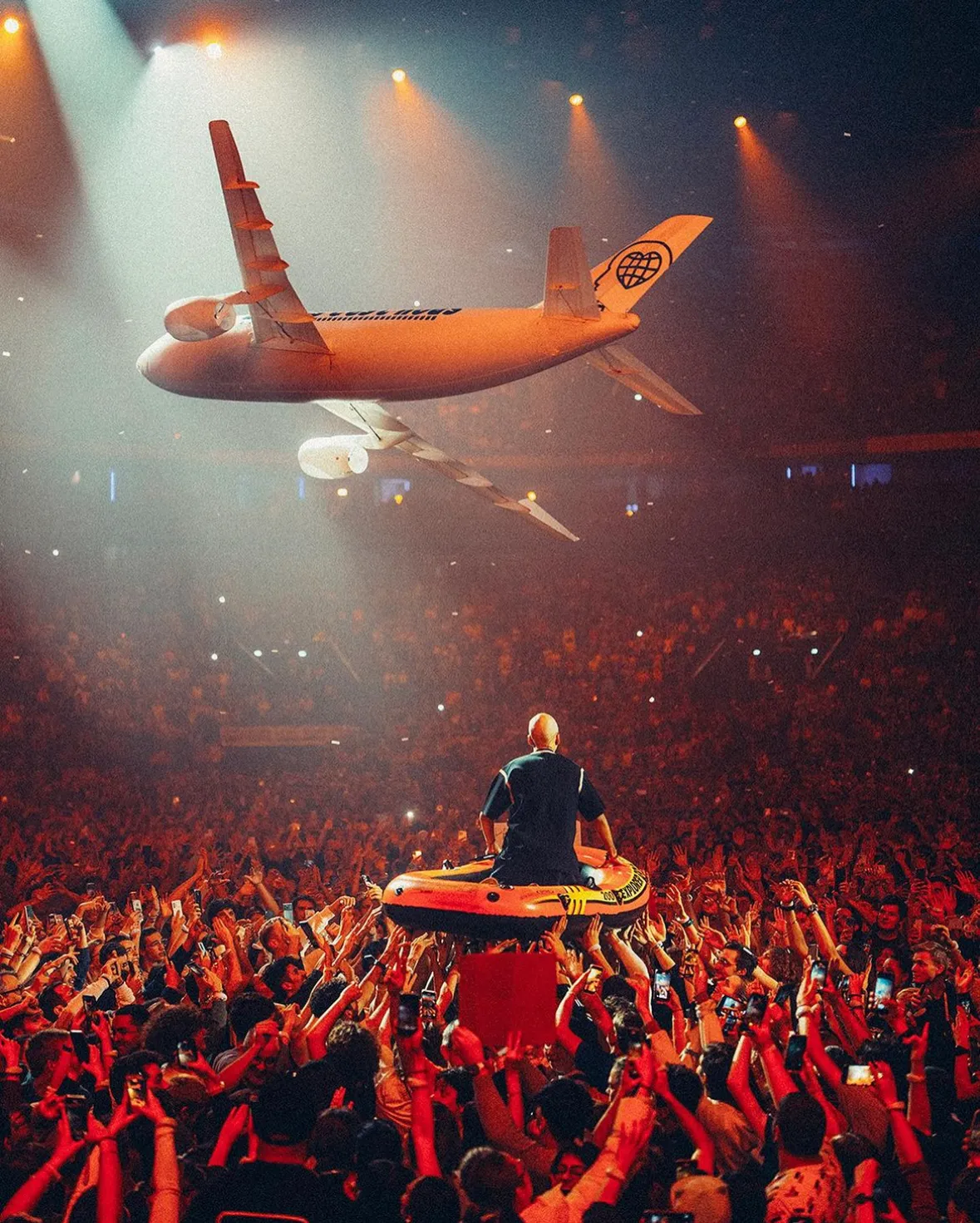 Côté scénographie, vous ne vous y trompez pas, Oli s'est bien offert une traversée du public en bateau gonflable, surplombé par un avion Les autres c'est nous, et la fameuse lune, tirée du titre Sur la lune. Le cliché nous vient du photographe Odieux Boby, que l'on retrouve habituellement sur la tournée des deux frères.